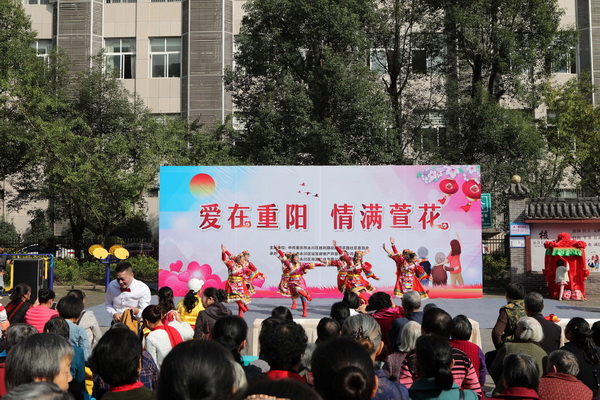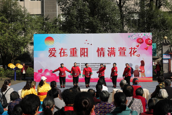 10月23日,重庆市永川区胜利路街道萱花路社区“爱在重阳,情满萱花”2020年度庆重阳节活动在萱花休闲广场举行。演出现场,来自社区的数十名大妈大叔激情表演了大合唱《共筑中国梦》、快板《党的光辉历程》、舞蹈《妈妈您别老》、民间传承《大花轿》等丰富多彩的节目。精彩的演出极大地丰富了社区居民的精神文化生活,给居民带去欢乐与笑声,喜迎九九重阳节的到来。同时,萱花路社区还表彰了优秀儿媳、优秀公婆以及疫情期间的老年志愿者。 整场演出始终洋溢在积极祥和、喜庆热闹的气氛中,充分展示了老年人们蓬勃向上、老有所乐、老有所学的良好精神风貌。 |