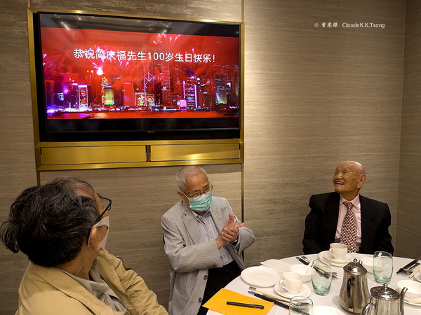 图文:曾家杰 何其荣幸,若按佛家说法,是三生有幸,我参加过三位摄影大师的百岁寿宴。 先是郎静山的,三十一年前在台北圆山饭店;继而是陈复礼的,六年前在香港大会堂裡的美心皇宫酒家;当下的是简庆福大师。 百岁寿宴上的简老 百岁寿宴上的简老 今年11月6日是简庆福大师的百岁华诞,他的百岁寿宴在11月20日中午假上环信德中心裡的美心皇宫酒家举行。 既是寿宴,实际上也是为摄影界朋友造就的一次聚会,与摄影人在一起,简老特别高兴。简老的九十岁寿宴曾经大搞,而这一次的百岁寿宴碍于疫情,不得不遵照防控规定而小搞。点选的人不多,筵开六席,每席六人,席与席之间隔了一大块座地的透明胶板。 简老的媳妇,即儿子简国铭的太太,负责迎宾,最乐于为摄影界服务的任伟思在旁协助打点一切。 简老穿著正装,戴上口罩,坐轮椅进入宴会厅 简老徇众请求,脱下帽,除去口罩,让大家拍照 11点45分,简老坐著轮椅来了,简国铭推著他进入宴会厅。简老身穿黑色外衣,粉红色衬衫,灰色西裤,繫上一条很别緻的领带,头上一顶黑与灰双色的间条绒帽,左手还握著一支拐杖。他精神饱满,满面笑容,逢人连连拱手作揖,不知道他能记起多少人的名字。 出乎意料之外,寿星变明星,摄影大师成了拍摄对象。他有求必应,一会儿对著右边的手机,一会儿转向左边的镜头,人人皆大欢喜。每个人都有机会站在他的身旁或背后,和他合影一张弥足珍贵的照片。 简老与家人合影。站立者左起:幼女,女婿,媳妇,儿子简国铭 简老与黄贵权(中),沉东强,沉东强夫人合影 冯汉纪与简老合影 任伟思与简老合影 贺寿一定有贺礼,最引人注目的是中国摄影家协会送赠简老的一个仙桃型蛋糕,一个双反照相机造型的个人印章,以及一张李前光、李舸、郑更生等中摄协领导亲笔签名的贺卡,祝贺简老福如东海,寿比南山。 同样出乎意料,中联办文体部王凯波副部长、彭婕处长、伍俊副处长和一位随员,在中摄协香港特区理事陈炳忠陪同下,亲自前来贺寿。 王凯波副部长和彭婕处长向简老送上鲜花和中联办副主任卢新宁亲笔签名的贺卡,贺卡上写著一对贺联: 龙天地入光影 逢盛世以颐年 香港文联致送的贺卡,同样充满文学韵味,上书对联: 心地高明宜福寿 精神爽朗自康宁 寿宴骤然升格,气氛更加热烈。 中摄协贺寿的蛋糕、贺卡和礼品—刻上简老名字的印章 中联办文体部副部长王凯波把中联办副主任卢新宁亲笔签名的贺卡转交简老 中联办文体部王凯波副部长(左起)、彭婕处长、伍俊副处长和随员与简老合影,右立者是中摄协理事陈炳忠 香港摄影界贺寿者联合购买了两个以新科技制造的座垫,连同一个红包,由黄贵权医生做代表,送给简老。 折腾简老,而简老也甘受折腾的拍照环节过后,大家深感满足,安静就座,中联办文体部嘉宾没有留下来。 每张餐檯上放了两份《河南摄影》,这是这家刊物的美意,以11月第11期全部12页的篇幅组成庆贺简庆福大师百岁华诞特刊。 《河南摄影》贺简老百岁华诞特刊 百岁人瑞简老给贺寿者的红包 黄贵权与简老合影,他抱著的是香港贺寿者的集体贺礼 简国铭代父亲吹生日蜡烛 简老拿著塑料刀作状切生日蛋糕 席间,简老的媳妇代表老爷向贺寿者派百元红包,简国铭则代父亲吹熄生日蛋糕上的蜡烛,简老拿起塑胶餐刀作切生日蛋糕状。 简国铭致谢词,陈炳忠转达中摄协的祝福,电视屏上一再播放中摄协为贺寿而精心制作的视频。 贺寿视频长1.5分钟,以生日乐曲开始,全国政协常委、中国文联党组成员、副主席李前光,中摄协主席李舸,中摄协分党组成员及各处室各单位主要负责人为简老献上生日祝福。 简老儿子简国铭致谢辞 陈炳忠转达中摄协的祝贺 中摄协贺寿视频,李前光致贺 李前光说:“2021年是党和国家历史上极不平凡的一年,在这个不同寻常的历史节点上,迎来了简庆福先生的百年华诞。摄影美好生活,摄影健康人生。此时,我在北京送上我的衷心祝福,祝简老生日快乐,我们相遇明天,共同见证摄影事业更加辉煌的未来。” 中摄协贺寿视频,李舸致贺 李舸说:“感谢中国摄影家协会顾问、香港著名摄影家简庆福先生为繁荣中国摄影事业做出了贡献,祝简老一百岁生日快乐。在此献上最衷心的祝愿,祝简老生命之树常绿,生命之水长流,寿诞快乐,春晖永在。” 中摄协贺寿视频,中摄协党组成员及各处室各单位主要负责人献上祝福 中摄协贺寿视频,恭祝简老100岁生日快乐 简老没有公开讲几句话,但在席上神态自若,兴致勃勃,时而指手画脚,时而抬头看一看中摄协的贺寿视频。与简老同桌的有黄贵权,陈平,沉东强夫妇,以及负责照顾简老的简国铭。 由于疫情制约,贺寿者都预先知悉座位安排,并接到通知:“要求在宴会中不过檯祝贺和拍摄照片”。因而大家都按规定在酒家入门处用手机扫描“安心出行”二维码,饮宴时不离座,全过程欢乐而平和,这种罕有的服从和守法精神,凸显了人的素质。 简老与前来贺寿的朋们畅叙近两个钟头后离场 百岁人瑞简老,身体可真了不起。先是与贺寿者逐一合影,继而在席间与老朋友畅叙,前后长达两小时,下午一点半钟之后才感到疲倦而离席。 寿宴持续,在两点十分圆满结束。 曾家杰与简老合影 |