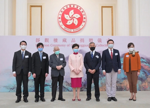 著名收藏家及摄影家兼静观楼主人黄贵权医生把多达1108组的半生珍藏转赠香港艺术馆,其中约60组藏品将率先于11月26日起举行的「静观自得——静观楼藏珍品捐赠展」展出。图为黄贵权医生参观展览。 香港艺术馆获著名收藏家及摄影家兼静观楼主人黄贵权医生慷慨捐赠逾千组以近现代中国书画为主的珍贵艺术品。行政长官林郑月娥11月24日出席静观楼藏品捐赠仪式并致辞时表示,历年来,香港艺术馆一直有幸获得许多有心人的捐赠。这些慷慨无私的捐赠,巩固香港致力守护传统文化艺术的信念,也提高香港艺术馆在国际文博机构之间的声誉,有助提升香港作为国际文化之都的地位,并进一步强化在国家十四五规划下香港作为中外文化艺术交流中心的角色。 行政长官林郑月娥11月24日出席静观楼藏品捐赠仪式。图为林郑月娥(左三)与静观楼主人黄贵权医生(左二)等人欣赏藏品。 提升艺术馆国际地位 黄贵权是一位退休名医,曾任结集了香港本地收藏家的组织「敏求精舍」的会长。他建立的私人收藏「静观楼」,藏品以20世纪中国书画为重心,主要涵盖海派名家书画珍品,当中以三大家朱屺瞻(1892至1996)、谢稚柳(1910至1997)、陈佩秋(1923至2020)不同时期的画作收藏最为完备。 朱屺瞻(1892至1996)画作《水村云起》。 陈佩秋(1923至2020)作品《荷花》。 谢稚柳(1910至1997)画作《鼎湖胜景》。 此次黄贵权医生捐赠的艺术品达1108组,种类丰富,除了海派名家珍品外,还包括从清代至近现代的扇面和成扇、楹联书法、袖珍册页,一系列宜兴紫砂壶刻连拓本及他的个人摄影作品。是次捐赠进一步奠定香港艺术馆成为保存本地私人收藏品的归宿,有助提升艺术馆的国际地位。 静观楼主人黄贵权医生的摄影作品《春凝》。 紫砂人物「献桃」掇球壶。 半生珍藏转赠特区政府 林郑月娥表示,香港地方虽小,但却一直以国际级的本地私人收藏闻名于世。香港有不少热爱中华文化并以保存及推广传统文化艺术为己任的藏家,以自己的力量建立起一个又一个独特的收藏。此次黄贵权医生把半生珍藏转赠特区政府,与大众分享金石乐、书画缘,体现了收藏家化私为公的高尚情操,也传递出医者造福世人的伟大精神。 林郑月娥表示,自1997年回归以来,特区政府一直积极推动文化艺术的发展,致力保护传统历史文化,促进与内地和海外的文化交流。本届政府对文化艺术工作尤其重视,随着翻新后的香港艺术馆、剧曲中心、自由空间、M+博物馆相继启用,香港故宫文化博物馆明年开幕,香港文化艺术的新格局已逐渐发展成形,以全新气象迎接香港特区回归祖国25周年。 香港艺术馆会从捐赠的珍品当中选出大约60组,率先于11月26日起举办静观自得—静观楼藏珍品捐赠展,明年初再举办另一个大型专题展。未来数年,这批逾千项的珍品亦会在特设的专厅静观楼藏品厅展出,让公众欣赏。 行政长官林郑月娥11月24日出席静观楼藏品捐赠仪式。 图为林郑月娥(中)、 静观楼主人黄贵权医生(左三)、 民政事务局局长徐英伟(右二)、 康乐及文化事务署署长刘明光(左一)、 香港艺术馆总馆长莫家咏博士(右一) 与其他黄氏家族成员在捐赠仪式合照。 |