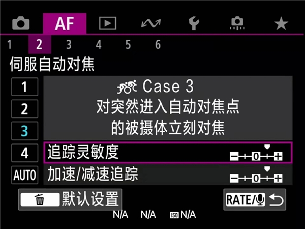 想得心应手地追焦,光有动物检测、眼睛识别、眼控对焦这些先进功能依旧不够,还得在AF1菜单的“切换被追踪被摄体”和AF2菜单的“追踪灵敏度”、“加速/减速追踪”这几个设置上下点功夫才行。佳能现在有一个自动挡,相机可以自己判断主体的运动特点。不过呢,自动化功能可以大幅提高下限,但是并不能提高上限,很多场景仍然需要根据经验来手动选择,让我们看看怎么玩: