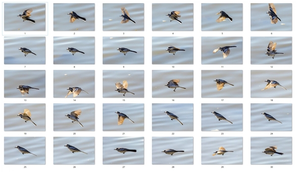 EOS R3, 30张/秒连拍下,记录一只白鹡鸰在1秒内的飞翔动作