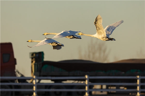 大天鹅,注意大桥上的栏杆,摇摄抓拍中几乎见不到果冻效应,EOS R3, F3.2, 1/4000s, ISO 320