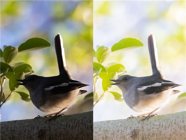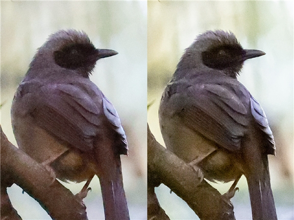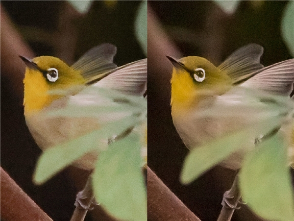 红胁绣眼鸟,EOS R3, F8, 1/2000s, ISO 32000, 100%截取,jpg(左),RAW(右)