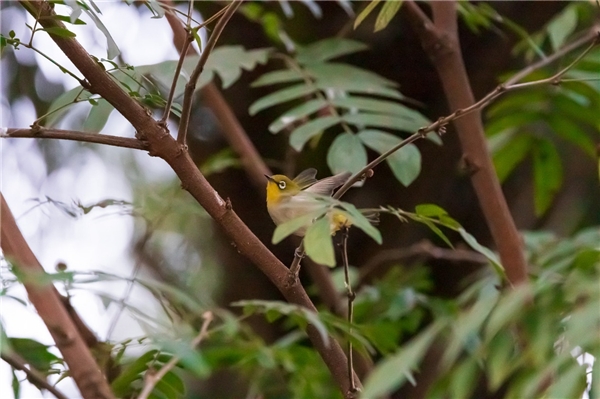 另一种是突然出现的、飞行速度很快的鸟,这种情况下我们要举着相机寻鸟,鸟即使进入了取景框也很难跟随,拍摄窗口极短,相机需要在鸟进入取景框的第一时间里完成合焦并拍摄。对于突然入框的鸟,眼控就没什么用了,你眼睛的反应速度打死也跟不上机器,可以按下SET键暂时关闭眼控。