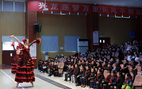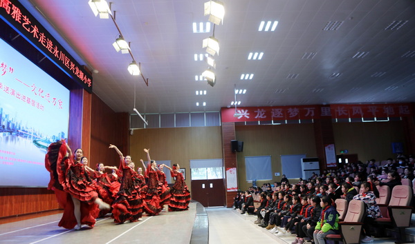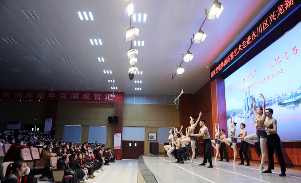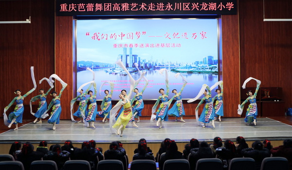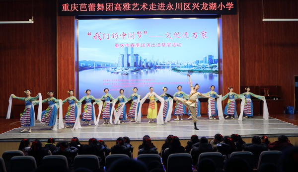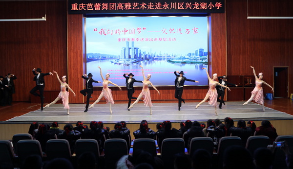 2月22日,由中共重庆市委宣传部、重庆市文化和旅游发展委员会联合主办的“我们的中国梦”——文化进万家重庆市春季演出进基层活动走进永川区兴龙湖小学,来自重庆芭蕾舞团的专业演员们为该校师生送来了一场精彩的文化大餐。 演出现场,芭蕾舞团演员们用曼妙的身姿、动人旋律拉开了此次芭蕾舞蹈的演出,轮番展演了《山水重庆》、《卡萨布兰卡》、《再唱山歌给党听》、《卡门》、《拉德斯基》、《我的祖国》等精彩的芭蕾舞蹈节目,期间还与学生们互动,专业的芭蕾舞舞者现场教学生们学习了用芭蕾舞动作表达“我爱你”、“你很漂亮”等手语。丰富多彩的活动赢得了师生们的阵阵掌声。 据了解,此次“我们的中国梦”——文化进万家重庆市春季演出进基层活动,重庆芭蕾舞团会将芭蕾舞带进永川区神女湖小学、子庄小学、兴龙湖小学、红旗小学、永和小学等5所小学,让永川区学生能够感受到芭蕾舞的魅力,丰富学生的业余文化生活,增长他们艺术文化修养。 |