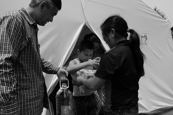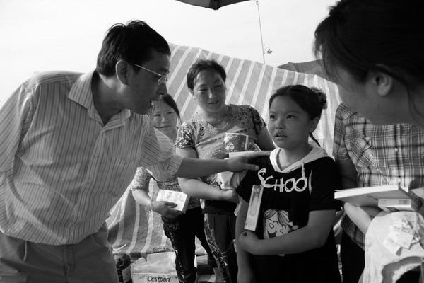 中国摄影在线四川消息 5月30日-6月6日,中国摄影在线一行4人,前往四川大地震灾区。 2日,满载着价值万元的食用油、粽子、咸蛋、内衣、卫生巾、药品、玩具等救灾物资,由2台越野车从成都出发,前往绵竹、什邡等受灾地区,对儿童、老人进行慰问。资金来源均为摄影师个人捐款,在成都全额采购。 在成都超市采购生活用品 采购药品 成都采购装运前往绵竹 按区域分配物质品种 摄影师杨万春向天齐村灾民发送食用油 向小朋友送去玩具 在东北镇向帐篷区灾民送出食用油 了解灾民生活短缺用品情况 向老人送上粽子和食用油 向灾民送上妇女用品 得到卫生巾的灾民 收到玩具的母亲 为绵竹市东北镇养老院6位孤寡老人送去食用油 |
