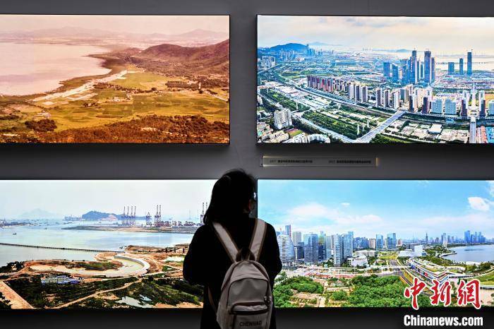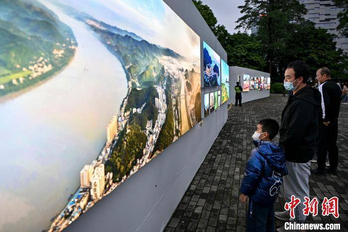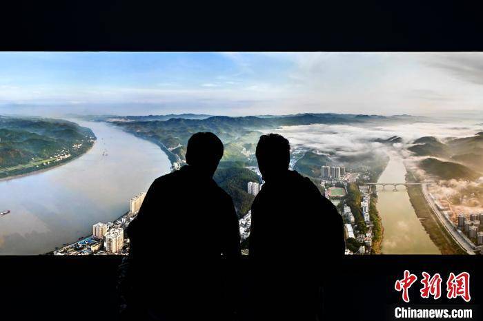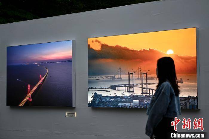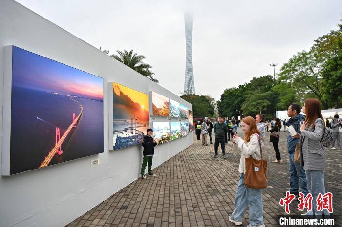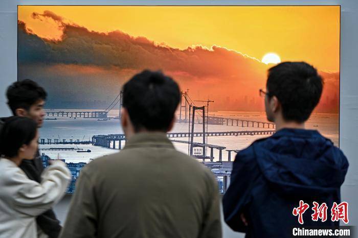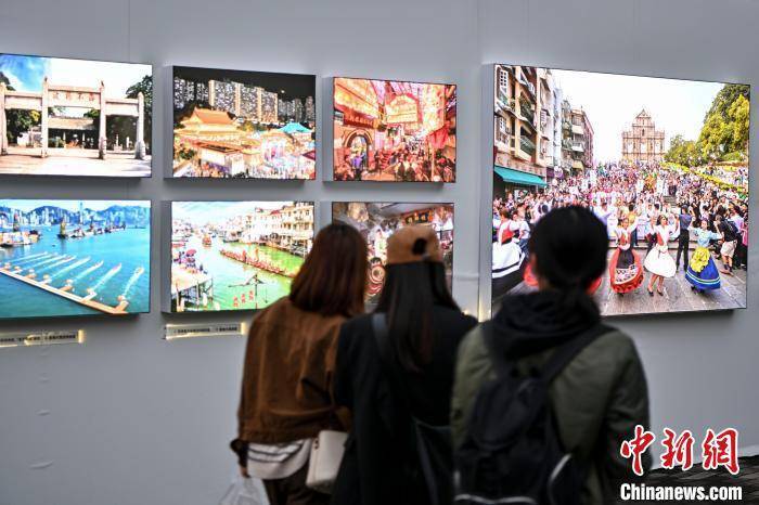 游客参观“水·融——粤港澳大湾区人文摄影展”。 陈骥旻 摄