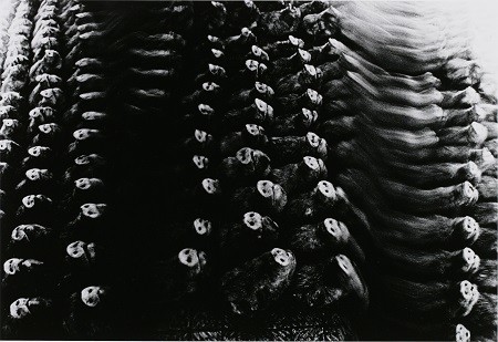 日本著名摄影家深濑昌久的回顾展“深濑昌久1961-1991回顾展”日前正在东京都写真美术馆展出,114幅作品详实追溯了深濑昌久在1960年代至1990年代的摄影实践轨迹,其中包括《游戏》、《洋子》、《鸦》、《家族》等东京都写真美术馆的馆藏作品,日本大学艺术学部在1980年代收藏的《无题》、《洋子》、《鸦》、以及其他个人收藏的《Bukubuku》(意为“吐泡泡”)、《佐助》等作品。 深濑昌久(1934-2012)是日本战后摄影界的重要人物之一。他成长于北海道世代经营照相馆的家庭,进入日本大学摄影系后展开创作,后与细江英公、森山大道等共同设立WORKSHOP摄影学校。以作品《鸦》为代表,深濑昌久对摄影实践的探索影响深远。 东京都写真美术馆“深濑昌久 1961-1991 回顾展”展览现场 赵博宇 图 “深濑昌久 1961-1991 回顾展”展览现场,2022年。 ©Tokyo Photographic Art Museum “深濑昌久以其对个人生活的深入观察和探究,在1960年代的日本摄影史上占据了独特地位。这是一种寻求摄影本源的行为,这种主题在后来被称为‘私摄影’,并成为摄影师开展创作实践的主要表现形式之一。”本次展览的馆方东京都写真美术馆对深濑昌久如此评价道。 作为深濑昌久在日本国内的首次大型回顾展,本次展览的规模体量庞大,即便是工作日也引来不少观众前来观展。由于展览现场禁止摄影,人群中许多人都带着纸笔,在出展作品前止步逗留、仔细记录。展览通过对深濑昌久创作历程的完整回顾,展示了其个人的生活方式和人生态度。一位70多岁的观众则袒露,“从展出的作品中,能深刻感受到深濑昌久创作时的心境。”在创作生涯中,深濑将镜头对准妻子、家人和其他熟悉的身边事物,在毫无保留地揭露私人生活的同时,正面揭示了潜伏在自我内心深处的疯狂一面。这种疯狂混合了对妻子洋子的爱意,以及一种富有幽默的轻松感,这使他的作品独具特色。 “深濑昌久 1961-1991 回顾展”展览现场,2022年 ©Tokyo Photographic Art Museum “深濑昌久 1961-1991 回顾展”展览现场,2022年 ©Tokyo Photographic Art Museum “深濑昌久 1961-1991 回顾展”展览现场,2022年 ©Tokyo Photographic Art Museum 《游戏》深濑昌久创作初期的作品,由十几年间拍摄的照片组成,共分为六个章节:“冥”回顾了与深濑同居八年的昔日恋人川上幸代,“屠”拍摄了被宰杀的家畜和女友鰐部洋子,“寿”则展示了与洋子的婚后生活,“戏”记录了深濑在新宿与那些从事地下文化的群体一同生活的时光,“母”和“谱”则拍摄了洋子和母亲。该系列以“游戏”的名义,捕捉了生与死、相遇和离别交织而成的日常。1971年,本作由《每日相机》编辑山岸章二进行编辑,成为深濑昌久出版的第一本摄影集。 屠,芝浦,1963年。选自《游戏》 东京都写真美术馆收藏 © Masahisa Fukase Archives 屠,芝浦,1963年。选自《游戏》 东京都写真美术馆收藏 © Masahisa Fukase Archives 深濑昌久的代表作《洋子》是以爱妻洋子为拍摄主题的系列照片。从相遇直至婚后,他拍摄洋子的时间长达十年。其中包括1960年代两人在草加松原团地生活的时光,70年代在北海道、金泽和伊豆旅行时拍摄的作品。1974年,《洋子》曾在纽约现代艺术博物馆的摄影展“New Japanese Photography”中展出。然而随着创作的深入,深濑和洋子之间却逐渐形成了一种悖论——仿佛他们在一起只是为了拍照。两人后来于1976年分开。 无题(从窗边),1973年。选自《洋子》 东京都写真美术馆收藏 © Masahisa Fukase Archives 无题(从窗边),1973年。选自《洋子》 东京都写真美术馆收藏 © Masahisa Fukase Archives 1971年夏天,已经三十多岁的深濑怀念故乡,带着洋子一起回到了位于北海道中川郡美深町的故乡,并在其父亲助造经营的照相馆拍摄了一张包括洋子在内的家庭纪念照片,使用的是一台放置在影棚中的旧相机,型号为Tachihara Anthony A型。这便是《家庭》系列作品的开端。之后,深濑经常回到故乡进行类似的纪念照片拍摄,但这一系列在1975年中断。1985年,目睹父亲年迈的衰弱躯体,深濑决定重新开始拍摄该主题。他给出了这样的理由:“颠倒在镜头反光中的家人迟早都会死去,而能够将他们的姿态截留的照相机,就是死的记录装置。”1987年1月,父亲助造去世,葬礼当天,穿上丧服的家人聚集在一起,在助造曾经站立的位置放置他的遗像,并拍摄了一张照片。1989年,深濑照相馆停业,家人四散,这个持续了将近20年的作品也落下帷幕。 昌久和父亲助造,1972年。选自《家族》 东京都写真美术馆收藏 © Masahisa Fukase Archives 后左起,妻子洋子、弟弟了晖、父亲助造、妹夫大光寺久,前左起,弟妹明子、妹妹的长子学、母亲みつゑ、弟弟的长女今日子、妹妹可南子、弟弟的长子卓也,1971年。选自《家族》 东京都写真美术馆收藏 © Masahisa Fukase Archives 1976年春天,为了逃离与洋子破裂的婚姻生活,深濑开始了一场旅程。他前往北海道,那里还保留着他童年时的原始风貌。从函馆向北,到达故乡美深町,然后访问了根室的纳沙布岬、钏路、标茶、美幌、网走和襟裳岬等地。在旅途中,他将镜头对准了在当地栖息的乌鸦。回到东京后,他向曾为他编辑《游戏》的山岸展示了照片。由于乌鸦出现的频率较高,在山岸的建议下将作品命名为“鸦”,并于同年以此作品举办了其15年来的首次个人摄影展。《鸦》也成为了深濑的代表作之一,于次年获得了第二届伊奈信男
