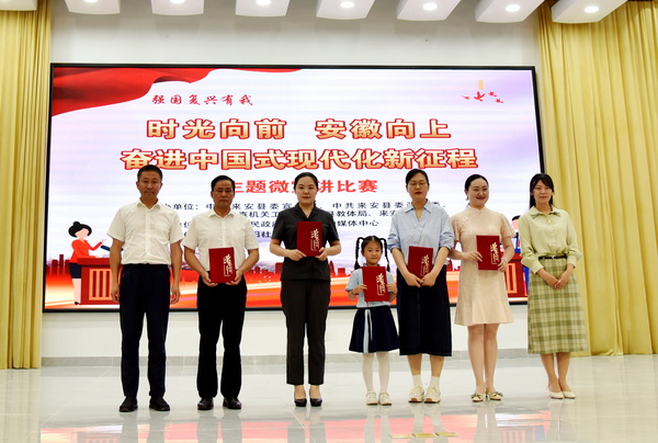 为深入学习贯彻习近平新时代中国特色社会主义思想,全面贯彻落实党的二十大精神,大力弘扬伟大建党精神,讲好来安红色故事、奋进故事,6月19日上午,来安县在新安镇永阳社区举办“时光向前安徽向上·奋进中国式现代化新征程”主题微宣讲比赛。 比赛现场,20支参赛队同台竞技,尽显风采,选手们紧扣主题,立足自身岗位和经历,通过演讲、曲艺、情景剧等多种形式,为大家带来了一场内涵丰富、声情并茂、思想深刻的精神大餐,赢得场下观众阵阵掌声。 通过此次比赛,充分展示了全县广大党员干部群众砥砺奋进、拼搏进取的精神面貌,也进一步营造了学习宣传贯彻党的二十大精神的浓厚氛围。现场的党员干部纷纷表示,将深入学习宣传贯彻党的二十大精神,勇于担当,主动作为,为谱写现代化美好来安建设的崭新篇章贡献力量。 经过激烈角逐,本次微宣讲比赛共评出一等奖5名、二等奖6名、三等奖9名。同时,将依据县级比赛结果,推报优秀代表队参加市级比赛。 快板《党的二十大精神放光芒》 情景剧《呵护“玫瑰”的天使》 为获奖选手颁奖 舞蹈《禾稻梦》 演讲《党史的光辉照耀中国》 演讲《闪光的名字》 |