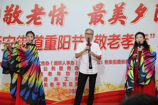 中国摄影在线网(记者 黄建华 通讯员 邓茜文)为庆祝传统重阳佳节,弘扬中华民族敬老爱老的优良传统,丰富离退休干部、党员精神文化生活。10月20日上午,新安街道机关退休干部党总支、老年协会、关心下一代委员会联合举办了“重阳敬老情·最美夕阳红”2023年新安街道重阳节“敬老孝亲”主题活动,为老同志、老党员们送上满满的祝福与欢乐。 文艺汇演在一片欢声笑语中拉开帷幕,全场演出以大家喜闻乐见的乐器演奏、舞蹈、歌曲等形式为主,清脆悦耳的歌声、轻松欢快的舞蹈、悠扬高亢的大提琴,让老同志们听得入神、看得喜悦。整场活动不时掌声雷动,笑声不断。特别是女生合唱《东方红》《南泥湾》等红色歌曲,唱出了对美好生活的向往,抒发着对伟大祖国的深情赞美和对中国共产党的无比热爱,展现出了新时代新安银发先锋们的精气神。 霞批夕阳情无限,霜染秋枫叶正红。本次文艺演出,用实际行动弘扬了中华民族敬老、爱老的传统美德,也让老同志、老党员们切实感受到了街道大家庭的温暖,提升了老同志、老党员们的获得感和幸福感。 |