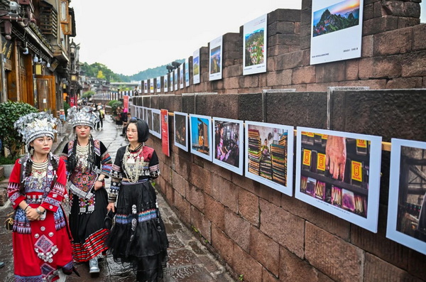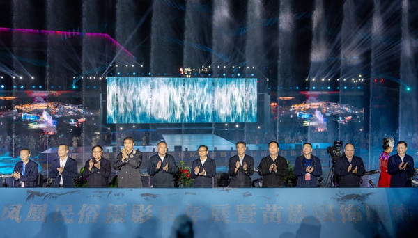 与会嘉宾共同为第六届中国凤凰民俗摄影双年展暨第九届苗族银饰服饰节启幕。 11月9日晚,湖南省凤凰县沱江之畔的凤凰样子文化村洋溢着欢乐祥和、热情奔放的民族氛围。来自贵州、广西、湖南十几个县市的苗族代表队身着传统民族服饰上演华丽银冠霓裳秀,苗族银饰服饰、民族歌舞轮番展演,第六届中国凤凰民俗摄影双年展暨第九届苗族银饰服饰节开幕式在《心漾凤凰》余音袅袅的歌声中,以现场和网络直播的方式拉开帷幕。 开幕式现场。 中国文联党组成员、副主席徐永军,中国摄影家协会分党组书记、驻会副主席郑更生,湖南省人大常委会原副主任蔡力峰、徐明华、叶红专,湖南省政协原副主席武吉海,湖南省委宣传部二级巡视员刘新年,湖南省文联党组书记、主席夏义生,中国摄协副主席王琛、谢子龙,湘西州政协主席李平,凤凰县委书记毛家,酒鬼酒股份有限公司副董事长、总经理郑轶共同为展览启幕。 分布在古城中的摄影展成为一道亮丽的风景。 中国民俗是中华文化的重要组成部分,是中华优秀文化传承的重要方式。中国凤凰民俗摄影双年展自创办伊始,结合湘西土家族苗族自治州和凤凰县特色,始终聚焦民俗摄影与民族摄影,策展选题围绕人类学、民俗学、民族学、社会学、艺术学、传播学等层面开展,得到社会各界的关注支持和认可,在推动中国摄影事业繁荣发展的同时,更以实际行动推介湘西、宣传凤凰,促进文化旅游和社会经济发展。本届双年展系列活动包含开幕式、苗族银饰服饰节巡游、民俗摄影研讨会、摄影讲习所、摄影名家讲座、采风调研等内容,将全方位、多角度、立体式展示凤凰文旅资源优势,彰显凤凰“诗和远方”,讲好“中国故事”的凤凰篇章。 郑更生在致辞中表示,中国凤凰民俗摄影双年展自2012年以来已成功举办五届,经过大家的共同努力,已成为中国摄影界具有影响力的摄影品牌活动和“湖湘文化”的重要传播阵地,是人们了解湘西、了解凤凰的重要文化纽带,对弘扬和继承中华优秀传统文化,推动中国摄影事业和湘西文化旅游事业发挥了积极作用。希望广大摄影人认真学习贯彻落实习近平文化思想,从传统文化中汲取营养,从文化根脉中寻找灵感,努力创作一批既具有地方特色,又具有艺术水准的高质量优秀摄影作品,讲好中国故事,传播好中国声音,展现可信、可爱、可敬的中国形象。 李平表示,近年来,凤凰县坚持在探索中发展,在发展中创新,充分利用文化资源优势,把文化与旅游融合起来,把资源与产品对接起来,把保护与发展统一起来,坚定不移走以文化旅游产业为主的“一业兴三化”特色发展之路。希望摄影家们用镜头和独特的艺术视角,展示湘西秀美的自然风光,宣传湘西独特的历史文化,解读湘西浓郁的民俗风情,让世界更好地了解湘西、认识湘西,让湘西更好地走向世界。 毛家在致辞中表示,中国凤凰民俗摄影双年展连续多届成功举办,让广大摄影爱好者、社会各界人士能够走进凤凰、宣传凤凰、推介凤凰。他代表凤凰县委、县人民政府和全县42万各族人民,用“再回首”“再出发”和“再相逢”三个关键词表达了感动之情、感谢之意和感恩之心。 中国摄影出版传媒有限责任公司董事长、总经理、中国摄影报社社长梁克伟,中共湖南省委宣传部二级巡视员刘新年,中共湘西州委常委、宣传部部长杨彦芳,湘西自治州人大常委会副主任向宏国,湘西自治州人民政府副州长、州公安局局长周燕飞,凤凰县委副书记、县人民政府县长樊忠清,与来自全国各省文联、摄影家协会代表,中国摄影金像奖获得者,知名摄影家代表,专家学者,参展作者及100名“神秘湘西 天下凤凰”旅游体验官等出席开幕式。 开幕式上,中国摄影家协会与湘西州人民政府就签订的《中国凤凰民俗摄影双年展长期战略合作框架协议》进行文本互换,并向凤凰县授予“中国摄影创作基地”称号。 本届双年展的展览丰富多彩,既有摄影名家有关民俗、民族题材的经典之作,也有展现湘西和全国各地民俗风情的优秀作品。“中国摄影金像奖获得者邀请展”位于凤凰古城内的凤凰广场中心区,颜劲松的长卷作品《苗家赶集》像一面“照片墙”一样矗立在中间;李馨曌的系列作品《帕米尔之赐》展区以青和白为主色,凸显了照片中的人物;蔡焕松的《潮汕年俗》展区添加了喜字、竹筐等民俗用品,与主题更加契合。这3组作品从不同的视角,以独特的艺术魅力和文化内涵,展现不同地区、不同民族的传统文化和民族风采,以期倡导摄影人坚守中华文化立场,记录原真性的民族、民俗事象,通过具有精神高度、思想深度、艺术温度的作品讲好中国故事,推动中华文化更好走向世界。 “文化旅游赋能乡村振兴”全国摄影大展由中国摄协、湘西州人民政府、湖南省文联主办,本次展出的入展作品涵盖了凤凰境内旅游业态、美丽乡村建设、人居环境改善、自驾游、乡村生活体验游、红色旅游、非遗、特色农业以及旅游新景观、新面貌、新气象等内容。由中国摄影报和凤凰县人民政府主办的“传承文化根脉,铸牢中华民族共同体意识”中国民俗摄影大展的入展作品展现了全国各地优秀的传统文化、民俗文化。这两个展览布置在凤凰古城的一条古街上,数百幅作品制作成的LED灯箱,在夜晚与古城的建筑交相辉映,吸引了众多摄影爱好者和游客拍照打卡。 “文化