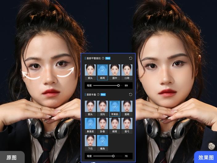 在实际应用过程中,”局部调色“功能显著提升商业摄影从业者的工作效率。一位从业多年的后期修图师在体验过新版本后表示:“它解决了以往修图过程中不同区域的调色障碍,最终呈现的效果也特别自然,几乎不需要再手动修细节了,能做到省心省力。” 此外,美图云修的7.1版本独家新增了“面部丰盈”与“面部平整提拉”两大功能,支持对额头、泪沟、苹果肌、下巴等多个区域进行“微雕”级处理,显著改善脸部凹陷与松弛问题,提升人像饱满度与轮廓紧致感。