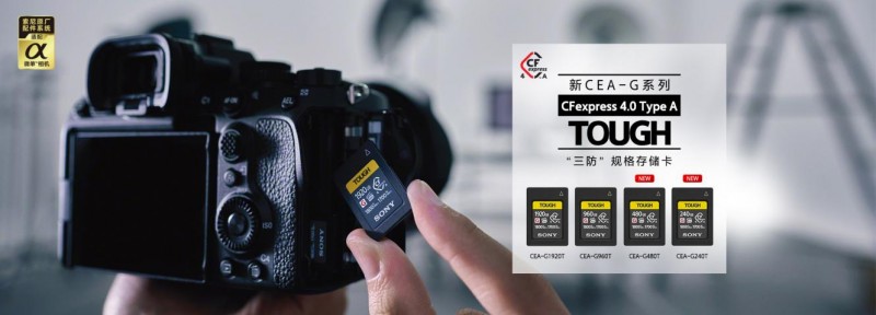 索尼高速、大容量CFexpress Type A存储卡CEA-G1920T(左) ,CEA-G960T(右) 索尼CFexpress Type A CEA-G系列存储卡 高速稳定、大容量 此次发布的CEA-G480T(480GB)和CEA-G240T(240GB),细化了索尼存储卡系列的规格选择,进一步丰富了高性能CFexpress Type A存储卡产品线。与CEA-G1920T(1920GB)和CEA-G960T(960GB)共同构成索尼CEA-G系列,四款产品覆盖各类专业创作场景下的不同存储容量需求。 索尼CFexpress Type A CEA-G系列存储卡均支持CFexpress 4.0标准*1,并获VPG 400视频性能认证,可实现高达约1800MB/s的读取速度*3及约1700MB/s的写入速度*3。相比CEA-M系列,速度分别提升约2.25倍和2.4倍*3,以高速稳定的数据传输性能助力创作者优化工作流程,提高工作效率,从容应对长时间4K视频录制与动态场景中的高速连拍。 该系列存储卡凭借TOUGH卡身设计,还具备优秀的耐用性能。与CFexpress Type A标准相比,抗弯曲性能提高了约10倍*4,抗冲击性能提升约5倍*5,具备符合IP57防护等级的防尘防潮设计*6,可在有挑战性的温度、X射线环境、静电环境及强紫外线条件下稳定工作,在恶劣的户外拍摄环境下,为用户提供可靠的存储保障。 此外,索尼存储卡用户还可下载专用恢复软件“Memory Card File Rescue”,来恢复意外删除的文件或损坏照片和视频*7。
