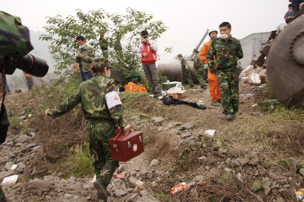 四川汶川大地震:蓥峰一名被埋124小时的幸存者成功获救 2008-5-18 1:06:56 陈伟录 中国摄影在线特派记者 中国摄影在线四川什邡市蓥峰消息 经过长达两天的营救,四川省德阳市什邡蓥峰实业有限公司一名被埋124小时的幸存者成功获救,该幸存者是一位31岁的女性。 这名女性在16日被发现开始营救,在河南武警总队官兵的不懈努力下,17日18时13分,终于成功救出。广州军区武汉总医院承担现场救护任务。 广州军区武汉总医院接到命令赶往现场 军医赶赴现场 军医赶赴现场 蓥峰实业有限公司综合楼 原本五层,下面三层被震塌 下面二层埋着一名31岁女性 由于在“地下”一层,要用大型设备挖掘 可爱的小女孩就是被埋女子的女儿 营救一直在坚持 河南武警总队官兵的不懈努力下,终于成功救出 本图片均属本网专稿,任何网站、报刊、电视台未经中国摄影在线许可,不得部分或全部转载。 |