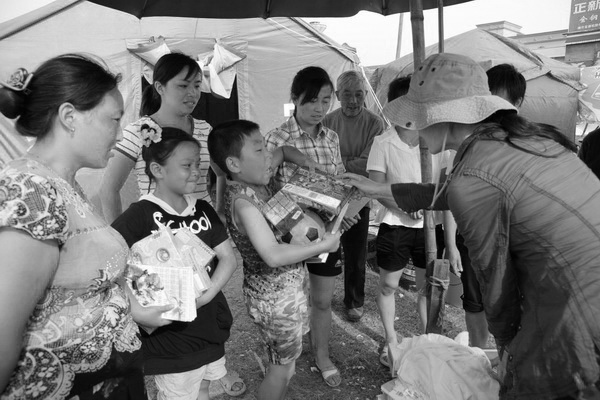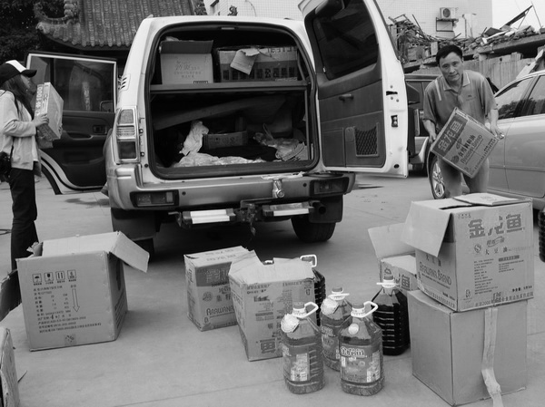摄影师捐款救济地震灾民 2008-6-10 22:04:17 ZHCVL 中国摄影在线专稿 中国摄影在线四川消息 5月30日-6月6日,中国摄影在线一行4人,前往四川大地震灾区。 2日,满载着价值万元的食用油、粽子、咸蛋、内衣、卫生巾、药品、玩具等救灾物资,由2台越野车从成都出发,前往绵竹、什邡等受灾地区,对儿童、老人进行慰问。资金来源均为摄影师个人捐款,在成都全额采购。 在成都超市采购生活用品 采购药品 成都采购装运前往绵竹 按区域分配物质品种 摄影师杨万春向天齐村灾民发送食用油 向小朋友送去玩具 在东北镇向帐篷区灾民送出食用油 了解灾民生活短缺用品情况 向老人送上粽子和食用油 向灾民送上妇女用品 得到卫生巾的灾民 收到玩具的母亲 为绵竹市东北镇养老院6位孤寡老人送去食用油 |